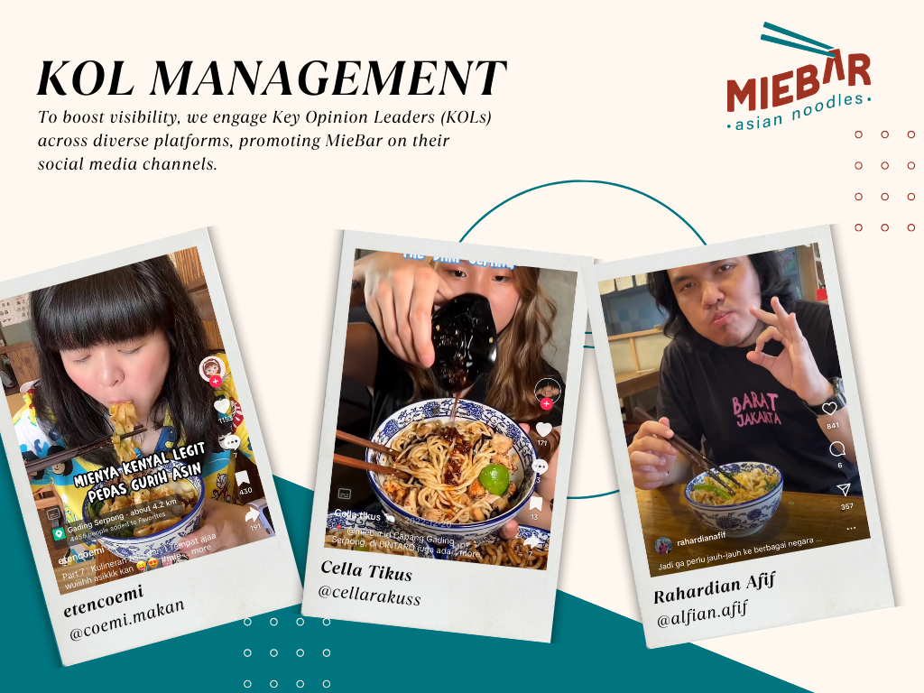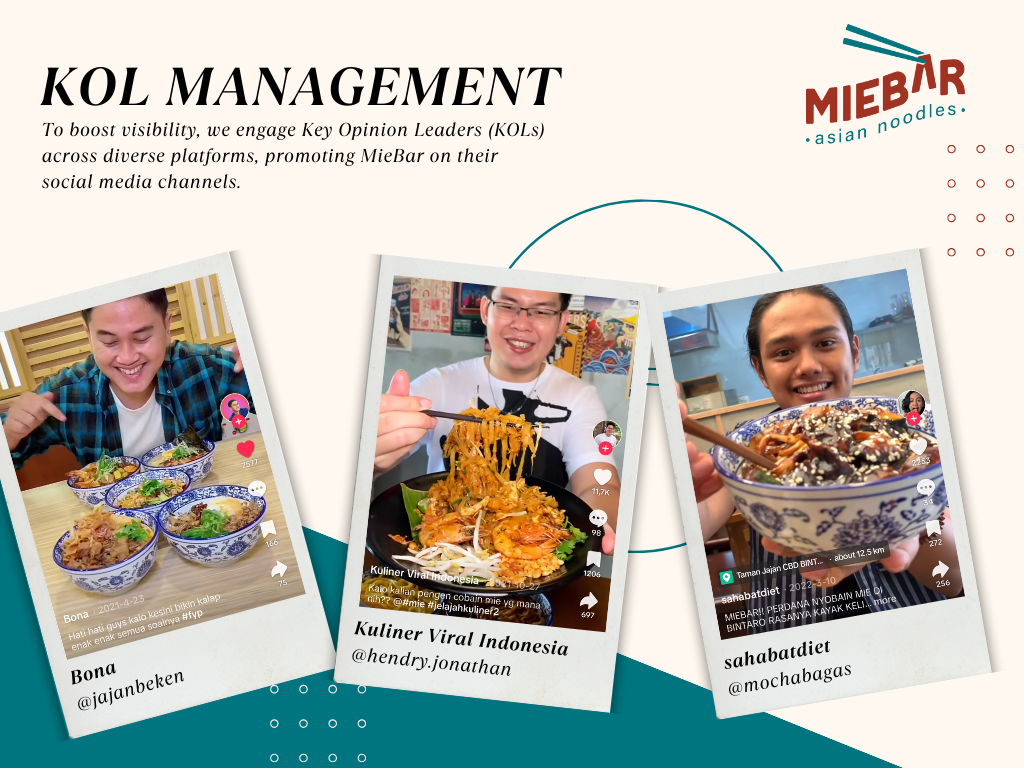 In order to connect with new audiences beyond MieBar’s followers, we utilize the authenticity of Key Opinion Leaders from different fields, mainly foodies and lifestyle.