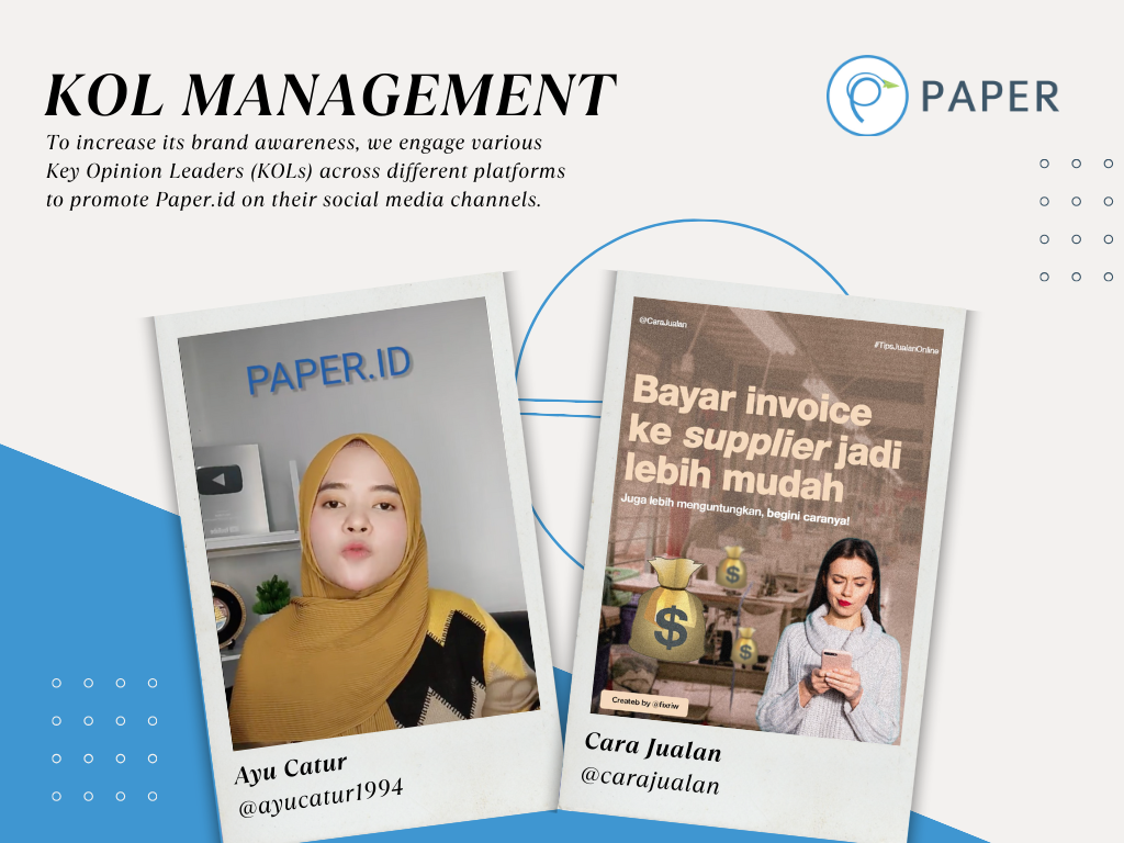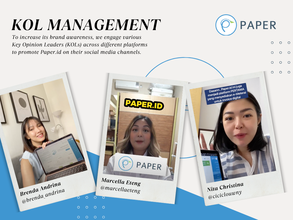 Through strategic collaborations with top-tier KOLs from business, entrepreneurial and financial industries, we’ve assisted Paper.id to connect authentically with their target audience — delivering their core messages and expanding brand awareness. From KOLs curation to upload supervision, we have guaranteed a smooth KOL engagement journey for Paper.id.